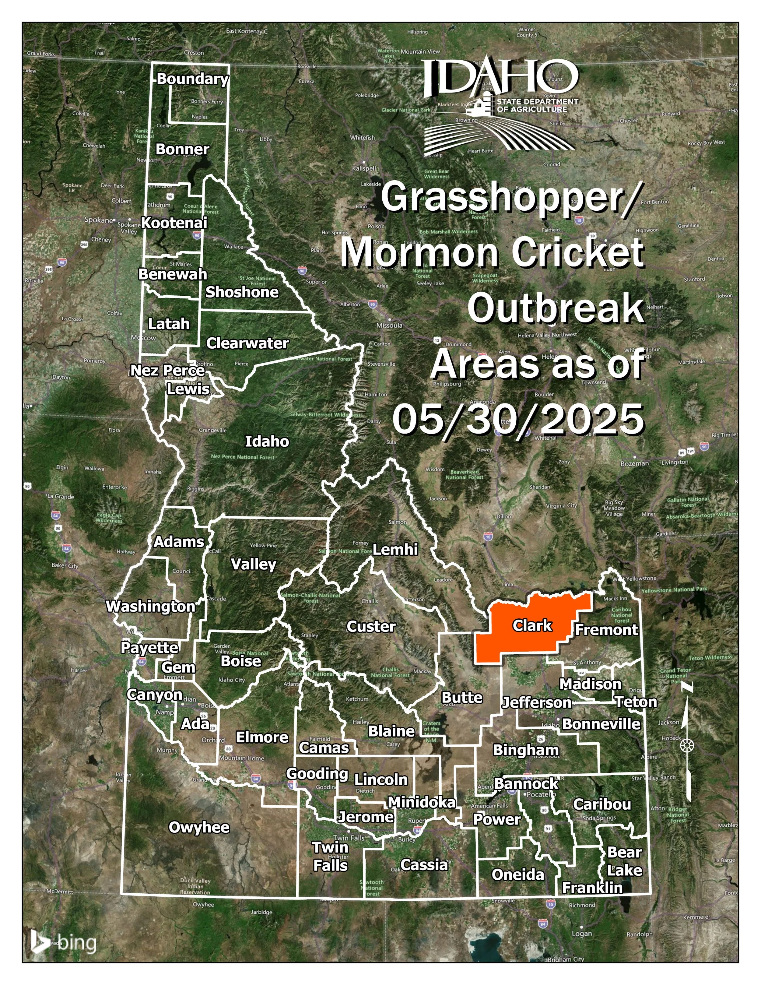 The Idaho State Department of Agriculture (ISDA) Grasshopper and Mormon Cricket Control Program offers assistance to agricultural producers in the suppression of economically damaging infestations of grasshoppers and Mormon crickets on private and state owned lands.